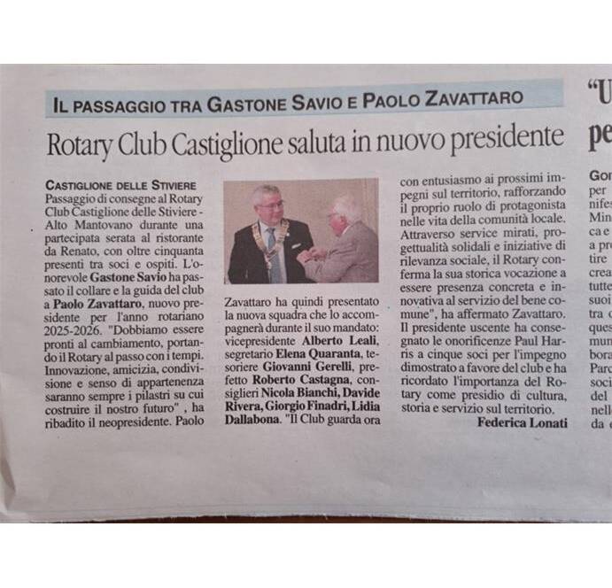 Uncategorized18 Novembre 2024Passaggio di consegne al Rotary Club Castiglione delle Stiviere: Paolo Zavattaro nuovo presidente